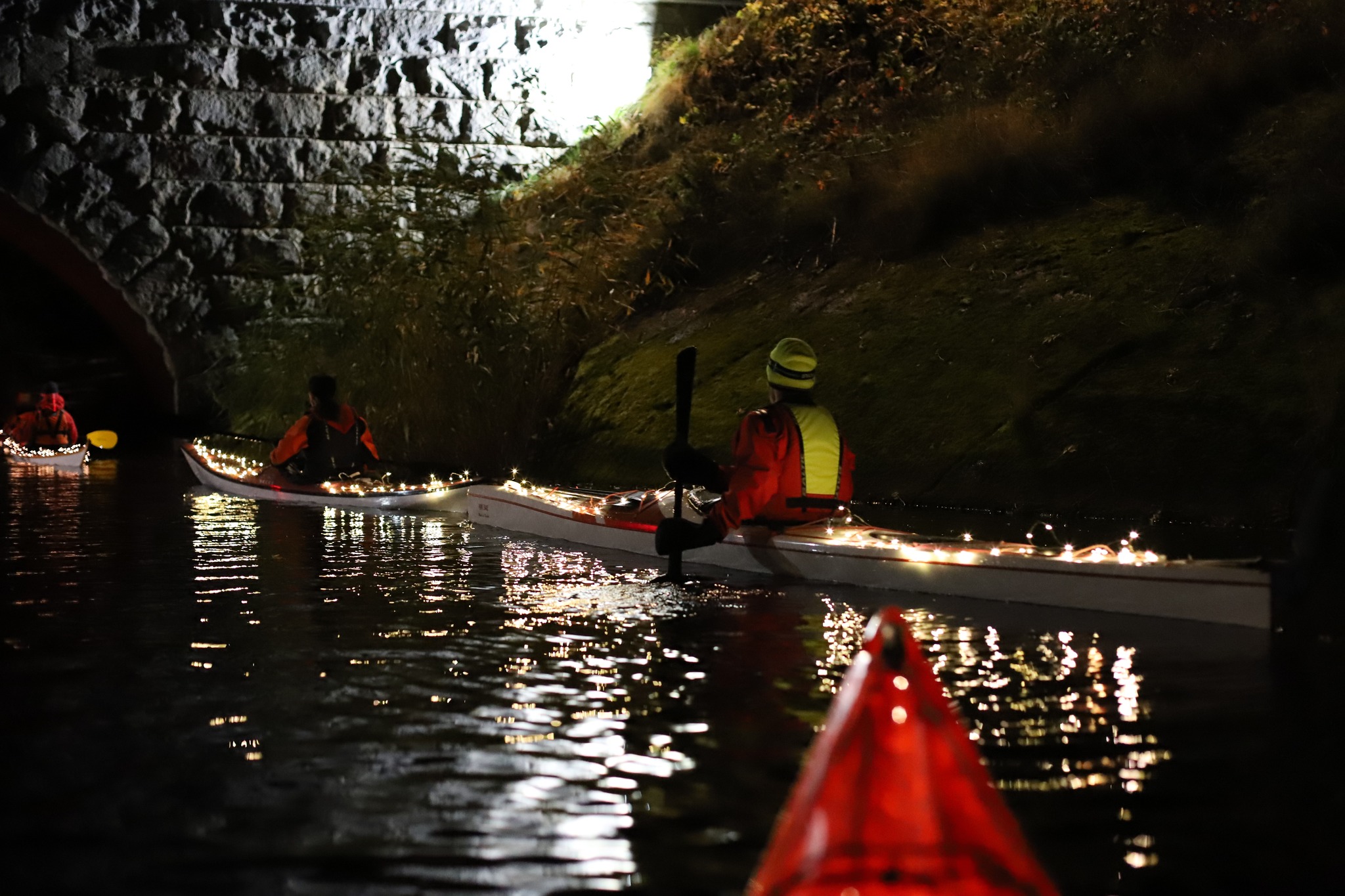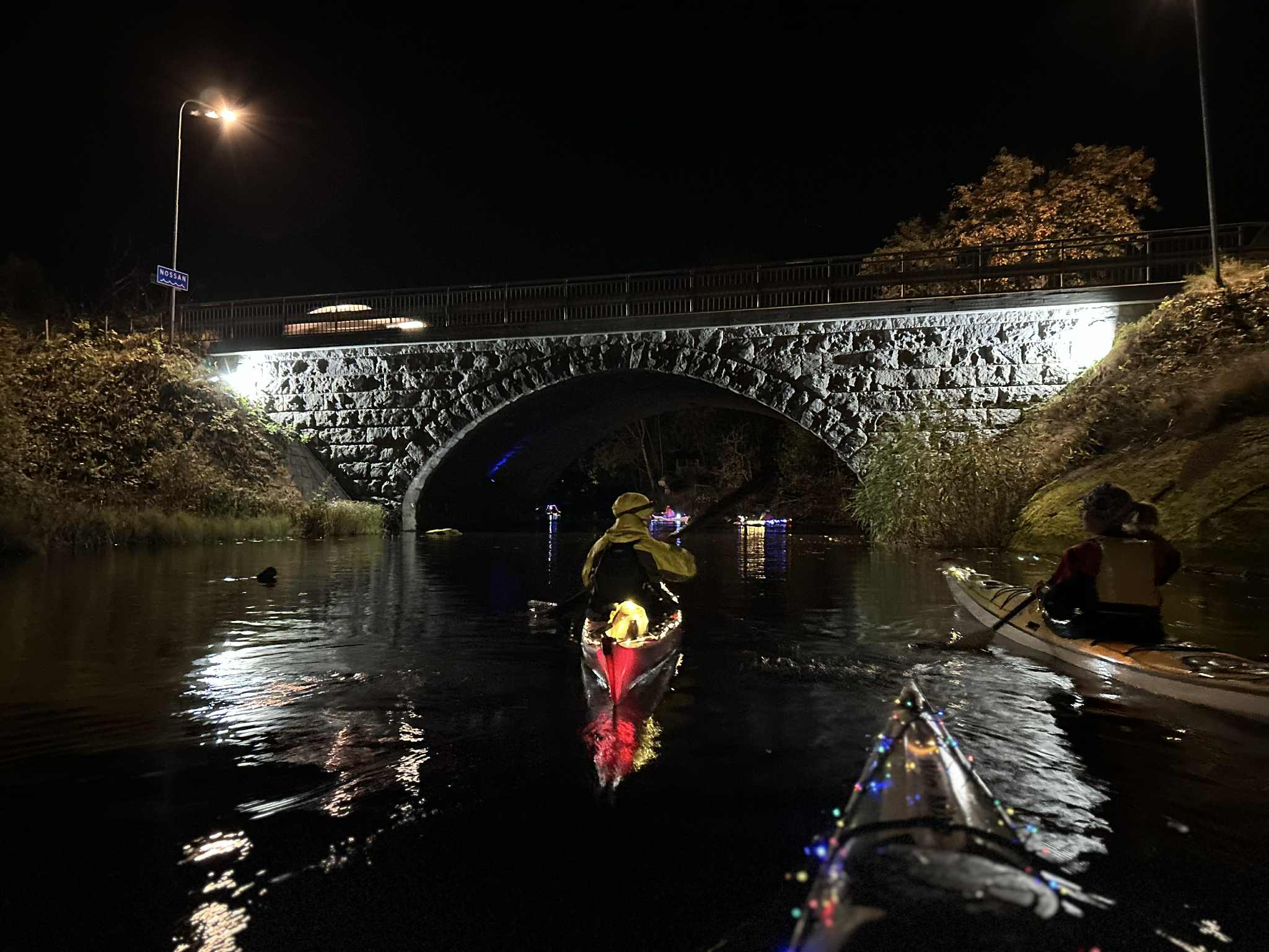 18 kajaker gled fram på ån Nossan vid Nossan ljusfestival i Grästorp igår. Det var roligt att se en sådan fin uppslutning på en så pass kort paddling. Vi bjöd på en upplyst och oväntad syn för alla på land och det var mycket uppskattat!