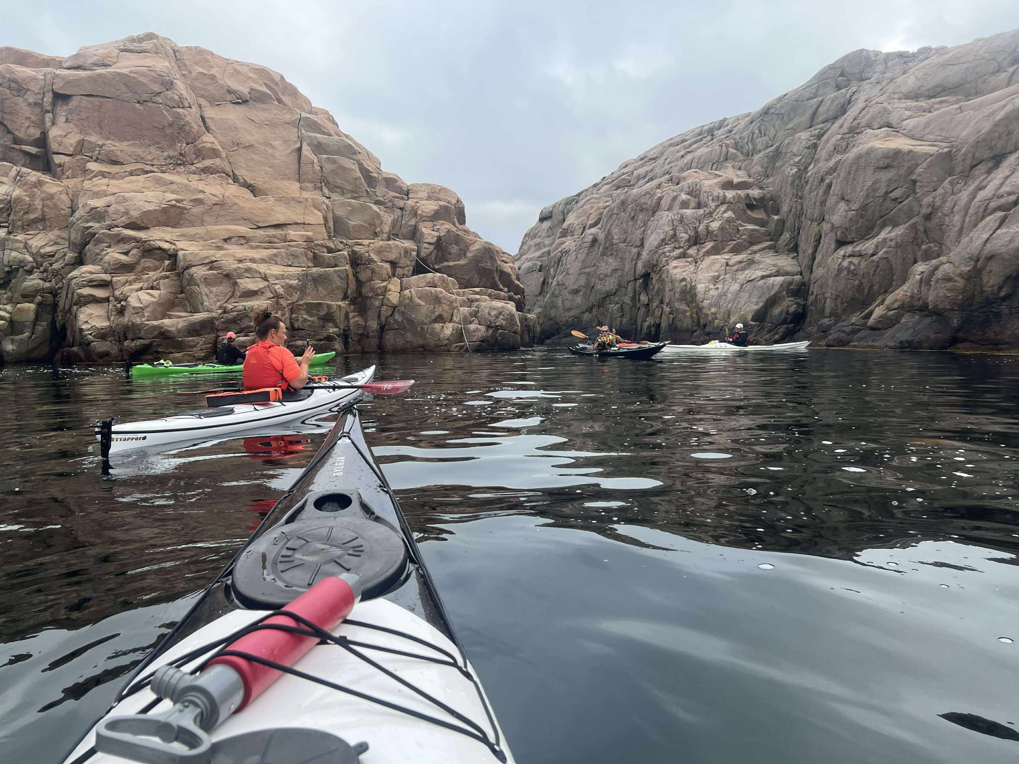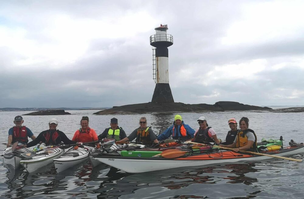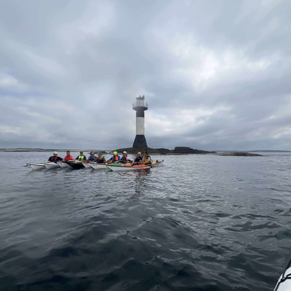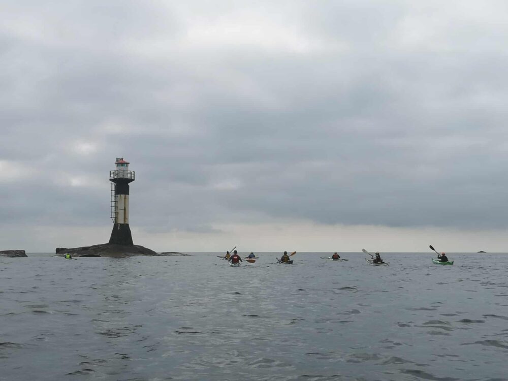 Det hade viskats och pekats på Väckers fyr under tiden. Men inte vill man som färdledare lura ut oanande paddlare på öppet och farligt vatten långt ut till Väckers fyr? Så det gjorde vi. 🙂