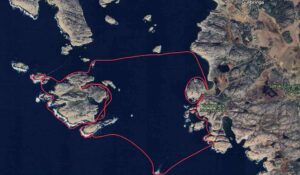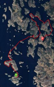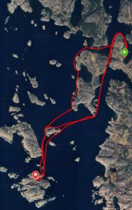 Havet var ovanligt väl inställt till vårt besök och fyren inspekterades från kajakerna. Kunde vi nu paddla så långt ut så var det ett enkelt beslut att sedan ta sikte på Kalven syd om Ulsholmen för hemfärd. Det blev en mycket paddlingsvärd dag.